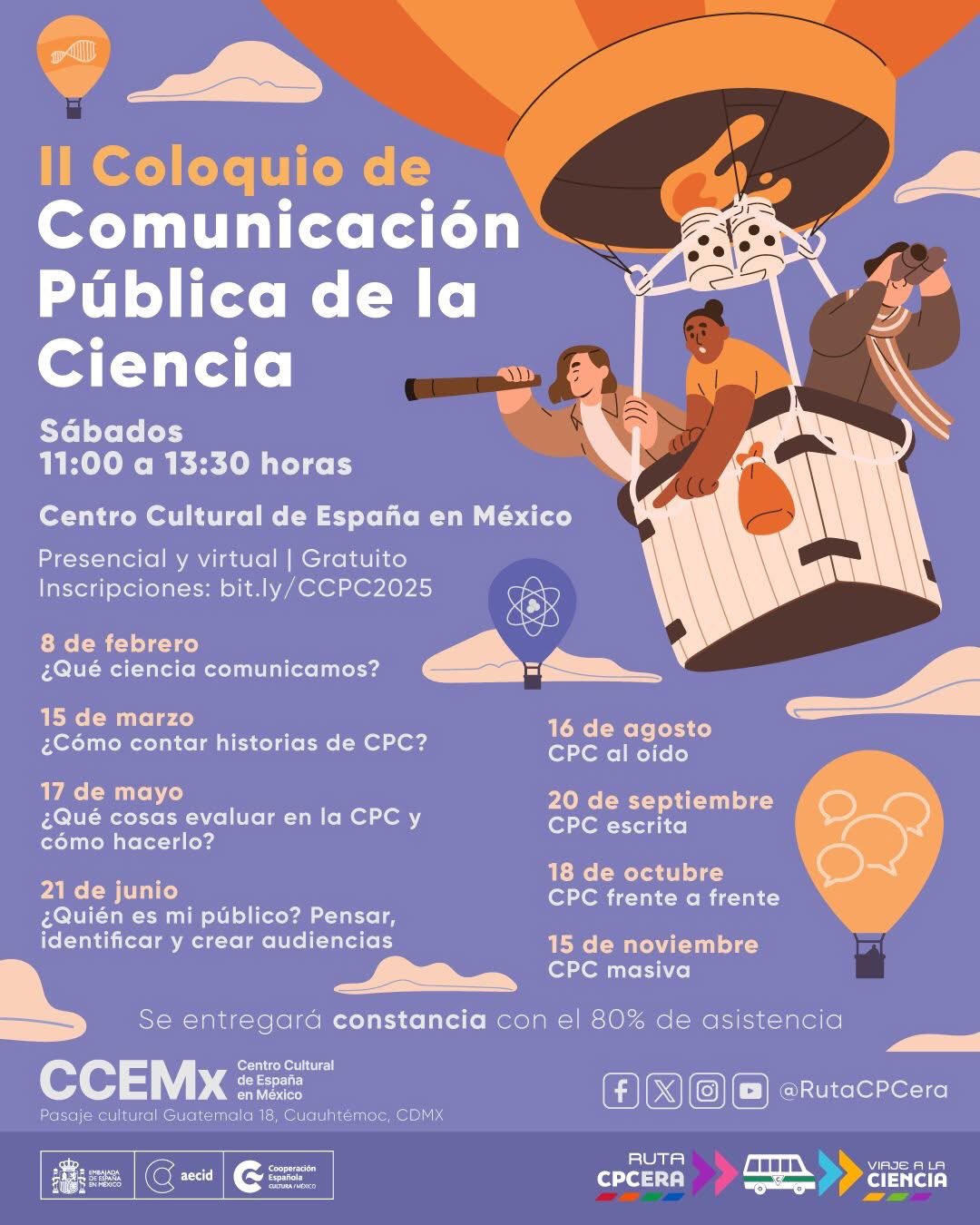 Más información y registro: https://ccemx.org/evento/ii-coloquio-de-comunicacion-publica-de-la-ciencia/