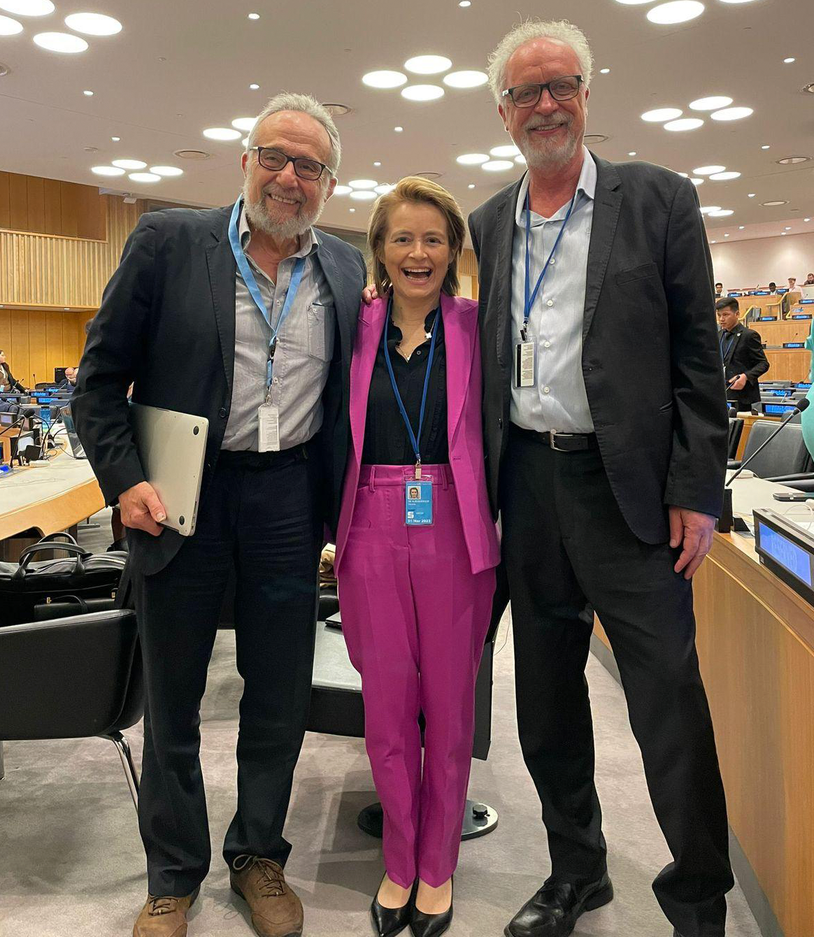 Catarina de Albuquerque junto a sus sucesores en el cargo, Léo Héller (dcha), y Pedro Arrojo (izqda).