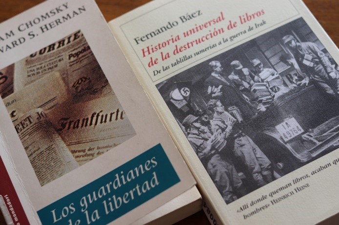 Encontramos clásicos y referentes universales como 1984 de George Orwell o Manufacturing Consent (Los guardianes de la libertad: propaganda, desinformación y consenso en los medios de comunicación de masas) de Noam Chomsky y Edward S. Herman, que advierten sobre los mecanismos contemporáneos de manipulación y control mediático. Junto a ellos, estudios como Historia universal de la destrucción de libros de Fernando Báez recorren la historia de la censura y sus consecuencias.